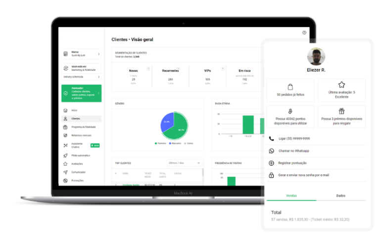 Uma experiência digital e intuitiva. Seu cliente pode pontuar no programa de fidelidade e receber ofertas.