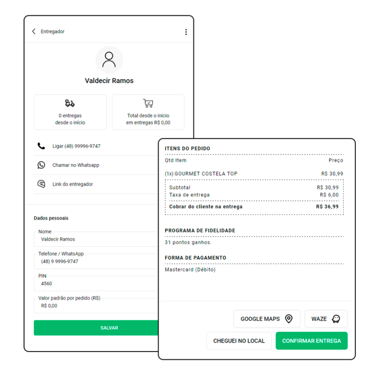 Otimize as entregas e a comunicação com os entregadores. Seu entregador pode monitorar seus pedidos através de seu link exclusivo. Notificação automática via WhatsApp para que o entregador seja avisado assim que um novo pedido for vinculado a ele.